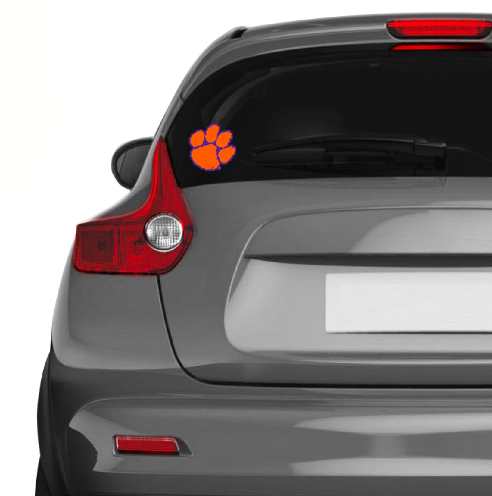 Show your Clemson pride with the Clemson Paw Car Sticker! This officially licensed sticker features the iconic Clemson Tiger Paw, perfect for any true fan. Measuring 6" x 6", it is just the right size to make a statement without overwhelming your vehicle's look. The adhesive backing ensures a secure and easy application on any smooth surface. Whether you're heading to a game or just driving around town, let everyone know you're a dedicated supporter of the Clemson Tigers with this vibrant, high-quality sticker.